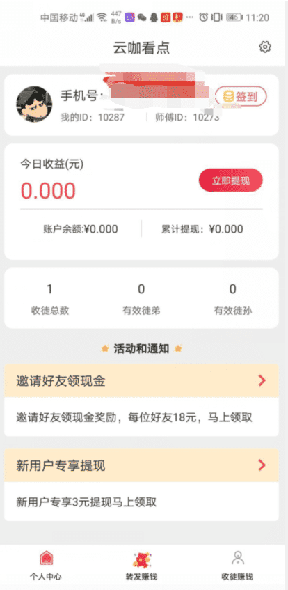5.享受徒弟转发收益的20%,徒孙转发收益的10%,共计30%。