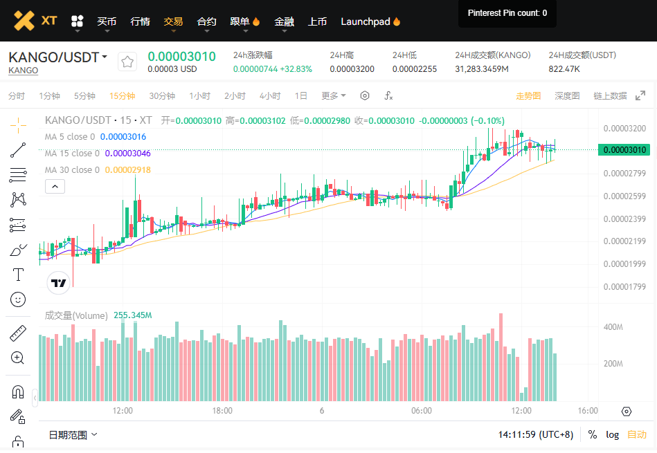 XT.COM 交易页面:KANGO/USDT