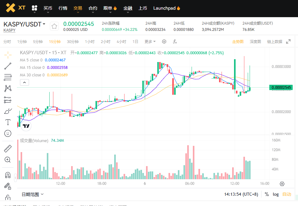 XT.COM 交易页面:KASPY/USDT
