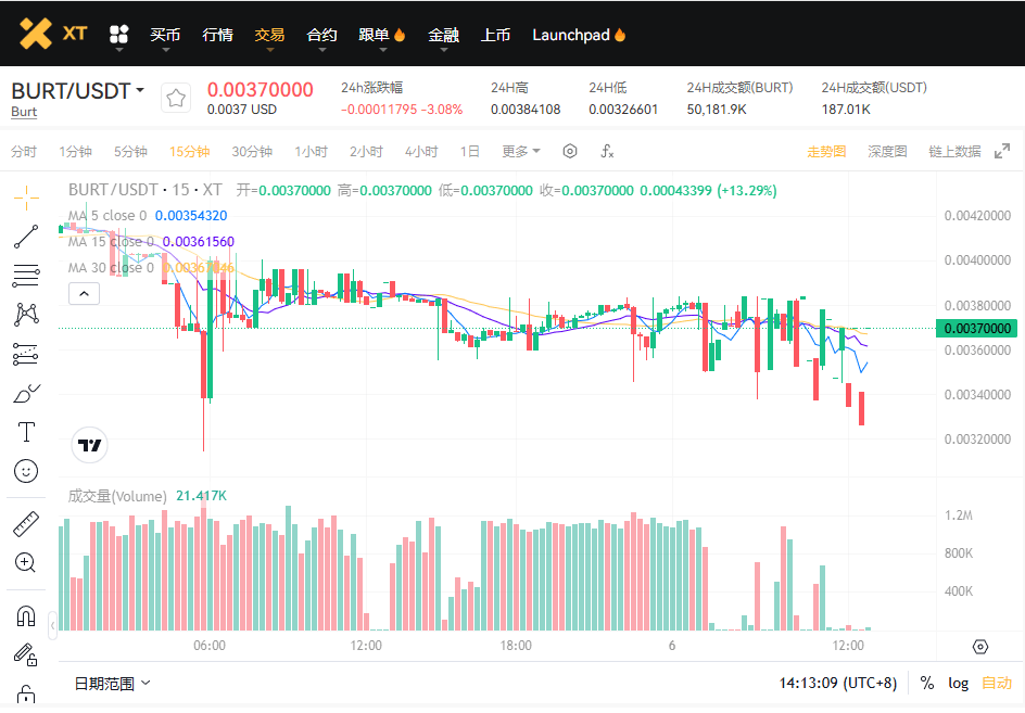XT.COM 交易页面:BURT/USDT