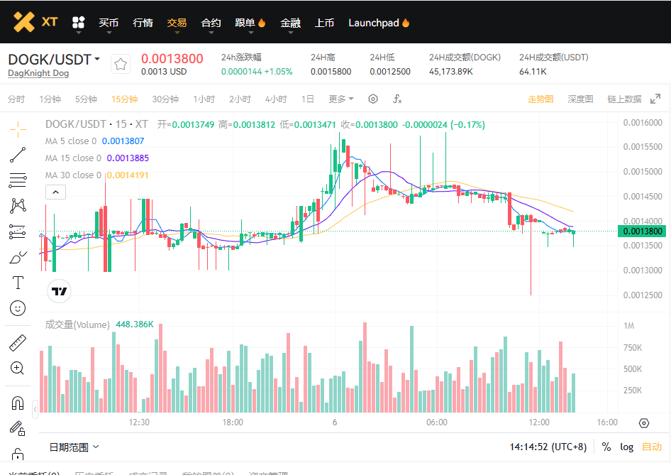 XT.COM 交易页面:DOGK/USDT