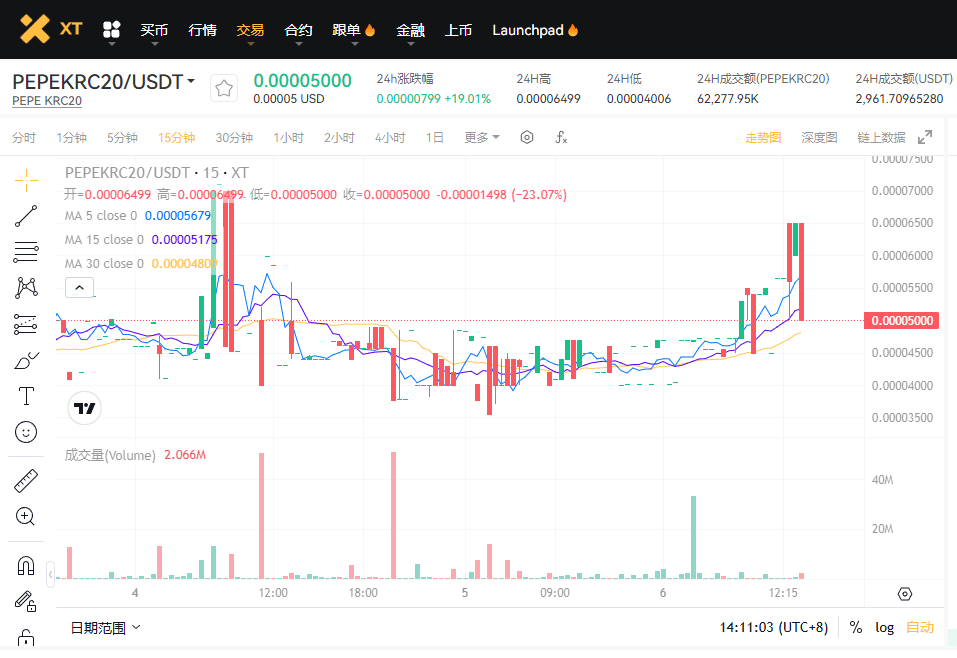 XT.COM 交易页面:PEPEKRC20/USDT