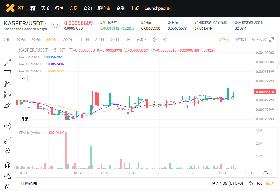 XT.COM 交易页面: KASPER/USDT