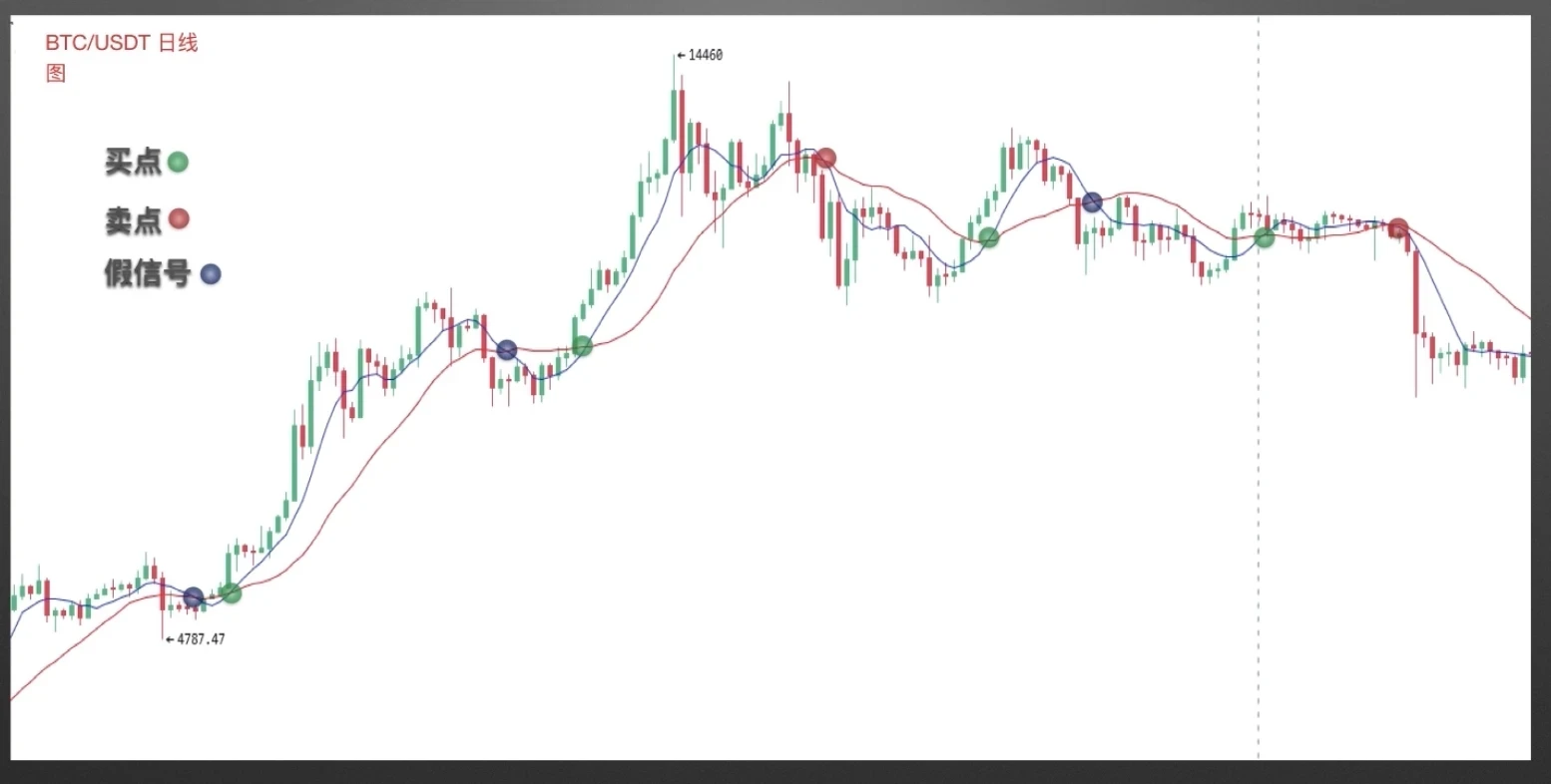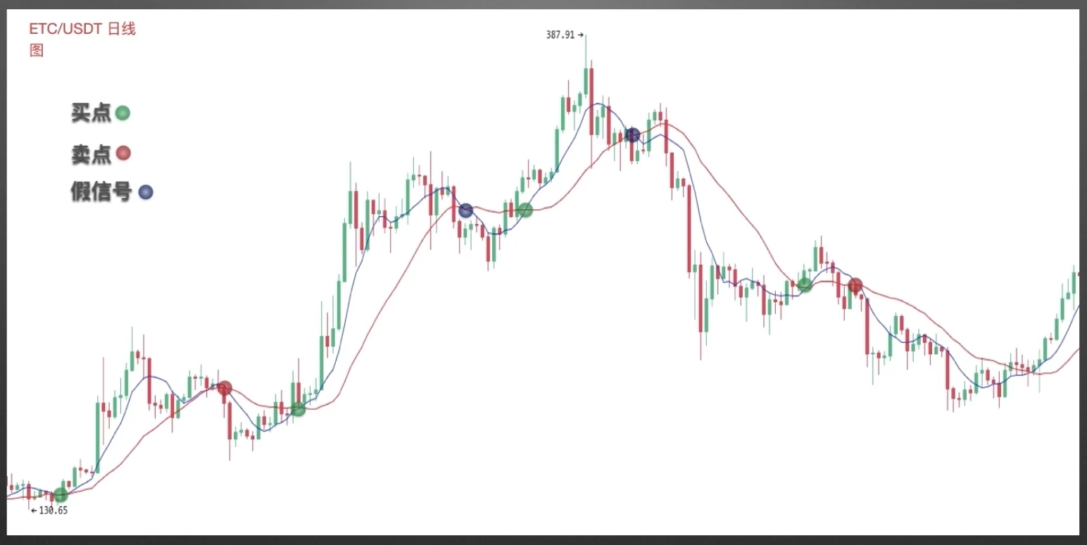 案例二截图来自欧易,ETC/USDT日线图,双均线组合也帮助我们找到很多优质买点和买点。