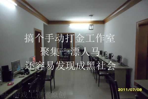 也许有人会质疑,谁会傻到一分钱工资都不给就来给你打工啊,朋友们你要知道,现在的社会是什么人才都有的啊,更何况玩游戏的人应该明白,游戏的魅力有多大的。你随便找个房子,扔十几台电脑在哪里,然后一些小孩子或是学生之类的,愿意来你就让他来,然后谈好,手动游戏赚钱,利润的话你看当地经济情况具体分配,感觉55分成,或是46分成的样子比较合理一点。