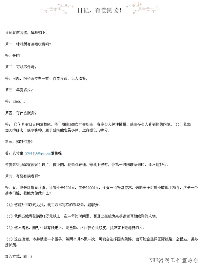 如何年赚百万?还是由懂懂自己告诉你们。这是他QQ空间日记有偿阅读收费标准!(给别人留言评论还得花钱,以前想都没敢想!)