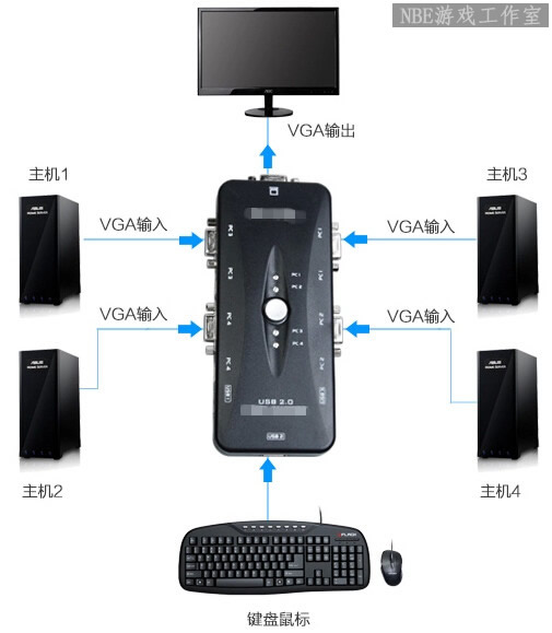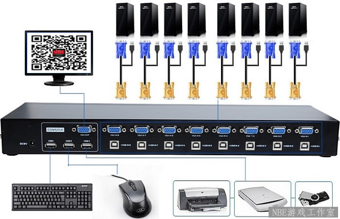 时代在变,格局在变,网游赚钱方法也在变!那些全自动,暴利,省时,省工的网络游戏工作室项目已经有2年没有找到过了!网游工作室电脑是越来越少,人工越来越多,硬件配置方面也必须得改变一下了。所以,机器准备全部换上KVM切换器,8台主机一个切换器,1个显示器,1个键盘鼠标,2个工人!