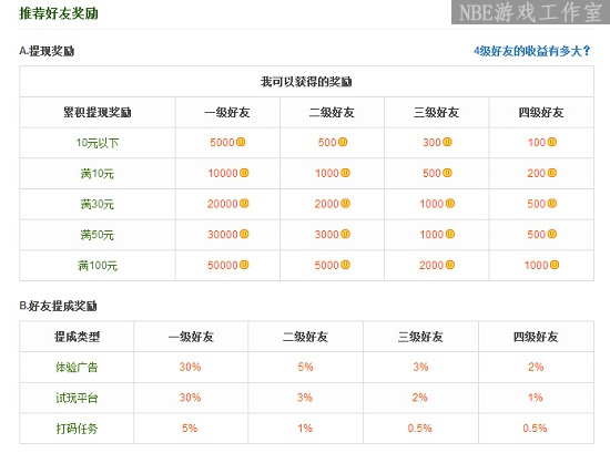 那么,那些网上到处发贴,说试玩游戏可以月入几块上万块钱的人都是SB吗?显示不是,在网上,每个人做一件事儿,肯定都有自己的利益相关。顺着这些月入上万的贴子链接我试着注册了一个游戏平台,发现了其中的秘密。原来任何游戏试玩平台,都有一个类似游戏推广员的系统(在我看来更像X销)。见下图:大概意思就是通过你的推广链接注册的每一个用户,试玩游戏时你都会得到百分之三十到百分之七十不等的提成。