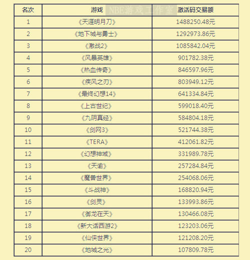 配图为2015年游戏激活码排行榜,给朋友们做个参考