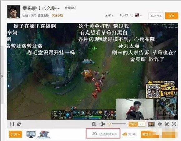 以上为开玩笑,去年LOL主播微笑在斗鱼直播在线人数超13亿的事情上了各大媒体之后,直播平台在线人数有水分这事儿已经妇孺皆知了。