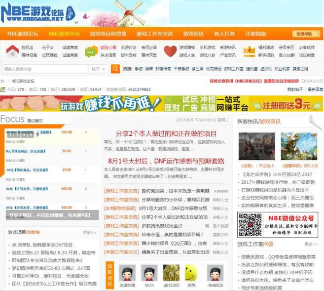 NBE游戏论坛、游戏工作室一站式解决方案服务平台、拥有最新最全的游戏赚钱项目出金思路、海量的游戏工作室建立运营心得、是一个真实靠谱的游戏赚钱论坛!