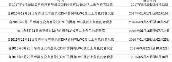 DNF有个活动叫做冒险家征集令----回归的勇士(非归来的勇士)下面是我统计的活动次数(可能存在误差);