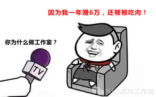 NBE交流1群有位朋友说“我为什么做游戏,做工作室?因为我一年赚6万,还顿顿吃肉!”曾经我们一度把这句话当作玩笑,把他当成笑柄,现在想想,这不正事我该学习的乐观积极向上的生活态度吗!