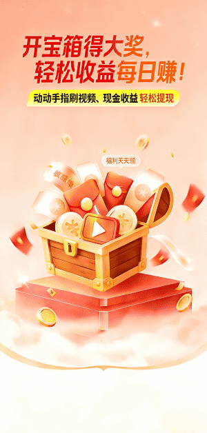 仟宝App(仟宝畅享版),开宝箱得大奖,是长沙橡榕科技有限公司(仟贝、仟果、仟玩旗下)推出的一款看广告及短视频赚钱平台。全新玩法,收益翻倍,大平台旗下更稳定,建议主应用搭配子应用一起玩。
