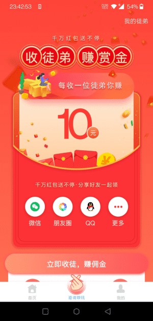 - 邀请好友注册并完成任务,享受徒弟收益的额外分成,可获得最高10元/人的奖励