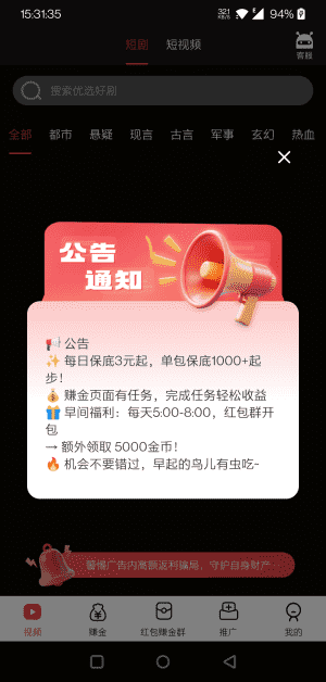 ③每日保底3元起,单包保底1000+金币,完成赚金页看广和夺宝任务有奖励