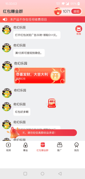 ①红包赚金群,经典的红包群玩法,看广拆红包,轻松赚金币,顶包1万金币
