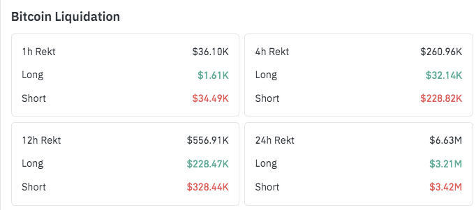 這種模式在較短的時間間隔內更加明顯。過去 4 小時內,共有 $260.96K 的持倉被強制平倉,其中來自空頭的為 $228.82K,來自多頭的為 $32.14K。在 12 小時的時間範圍內,總強制平倉金額達到 $556.91K,其中空頭持倉為 $328.44K,多頭持倉為 $228.47K,維持了相同的趨勢不平衡。