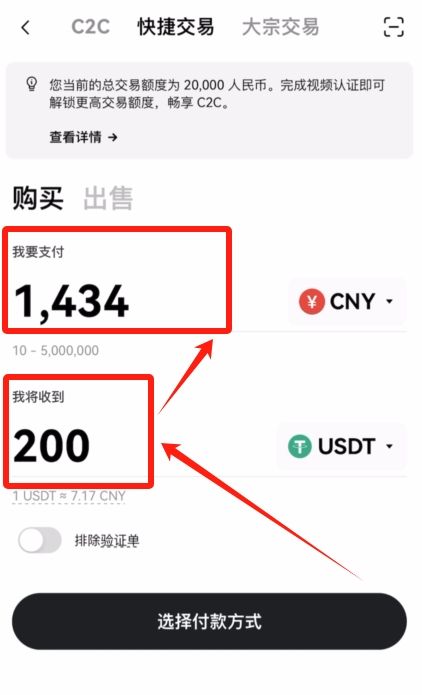 当然你也可以选择用C2C。在这里面筛选一下我们想要购买的金额,以及支付方式。
