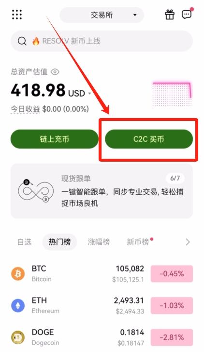 在欧易的首页点击【C2C买币】。