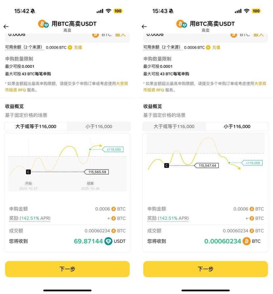 币安的双币投资和欧易的双币赢是同一种类型的结构化金融产品,本质都是保息不保本的理财,到期结算时根据市价与挂钩价的对比,可能获得不同币种的本金或利息,让你能在看涨或看跌的市场中,赚取额外利息,但存在币种转换风险,适合对市场走势有预判的用户,类似于卖出选择权赚取权利金。