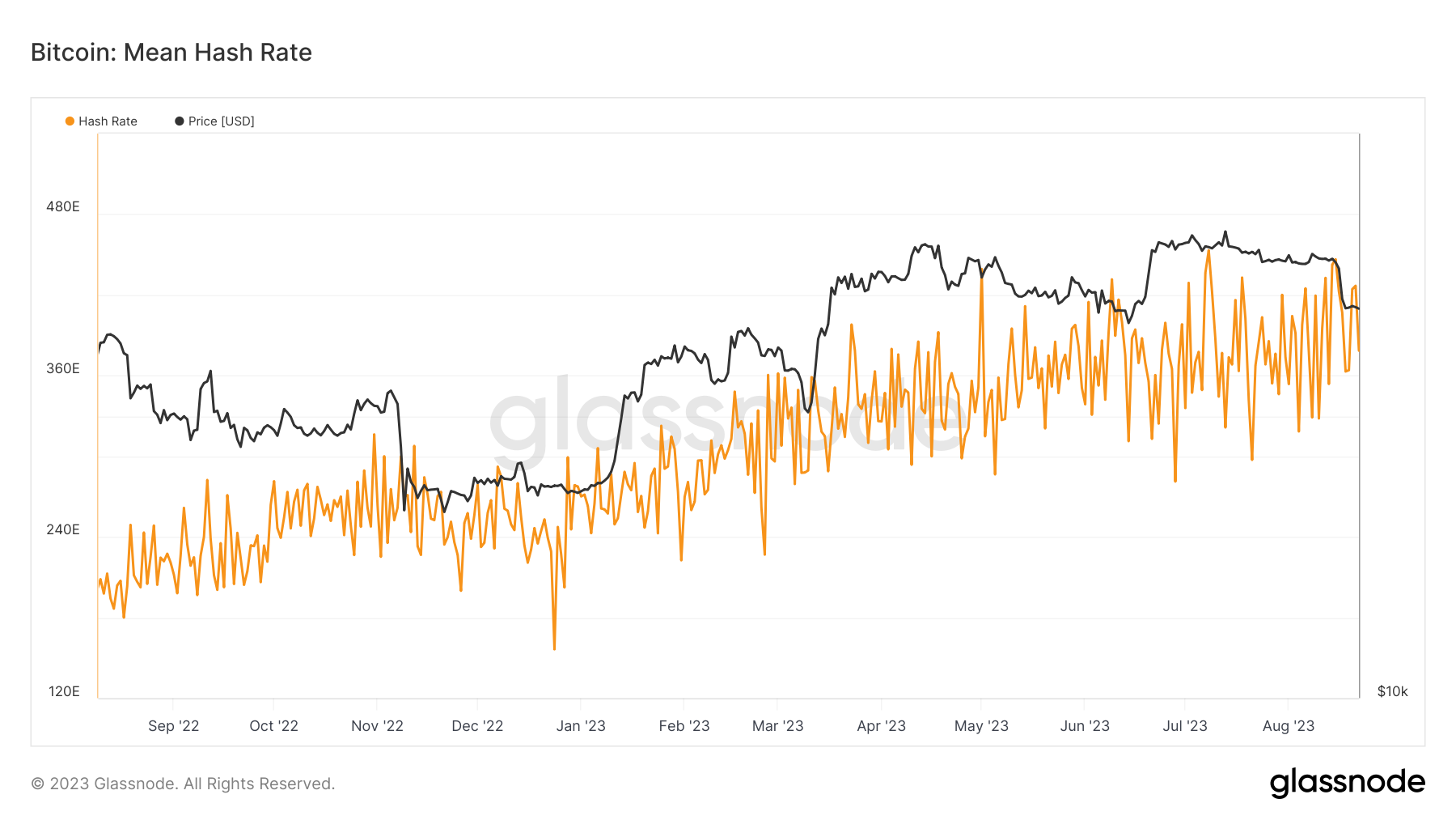 虽然无法准确计算,但哈希率已经挑战了每秒超过 400 exahashes (EH/s) 的现有历史高点。