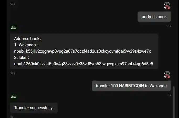 NostrAssets 通过 Nostr 在自然语言上实现了组合性和互操作性。它充当连接 Nostr 上不同去中心化应用程序的桥梁,使它们能够无缝地协同工作。用户可以简单地使用对话式语言执行金融操作。例如,您可以在去中心化社交消息应用程序(如 Damus、Iris 等)上说「将 100 sats 转给 Bob」来启动交易,使体验用户友好且易于访问。