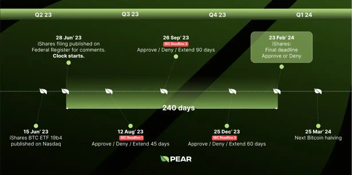 贝莱德提交现货比特币 ETF 申请后,有一些关键日期和时间节点值得关注。