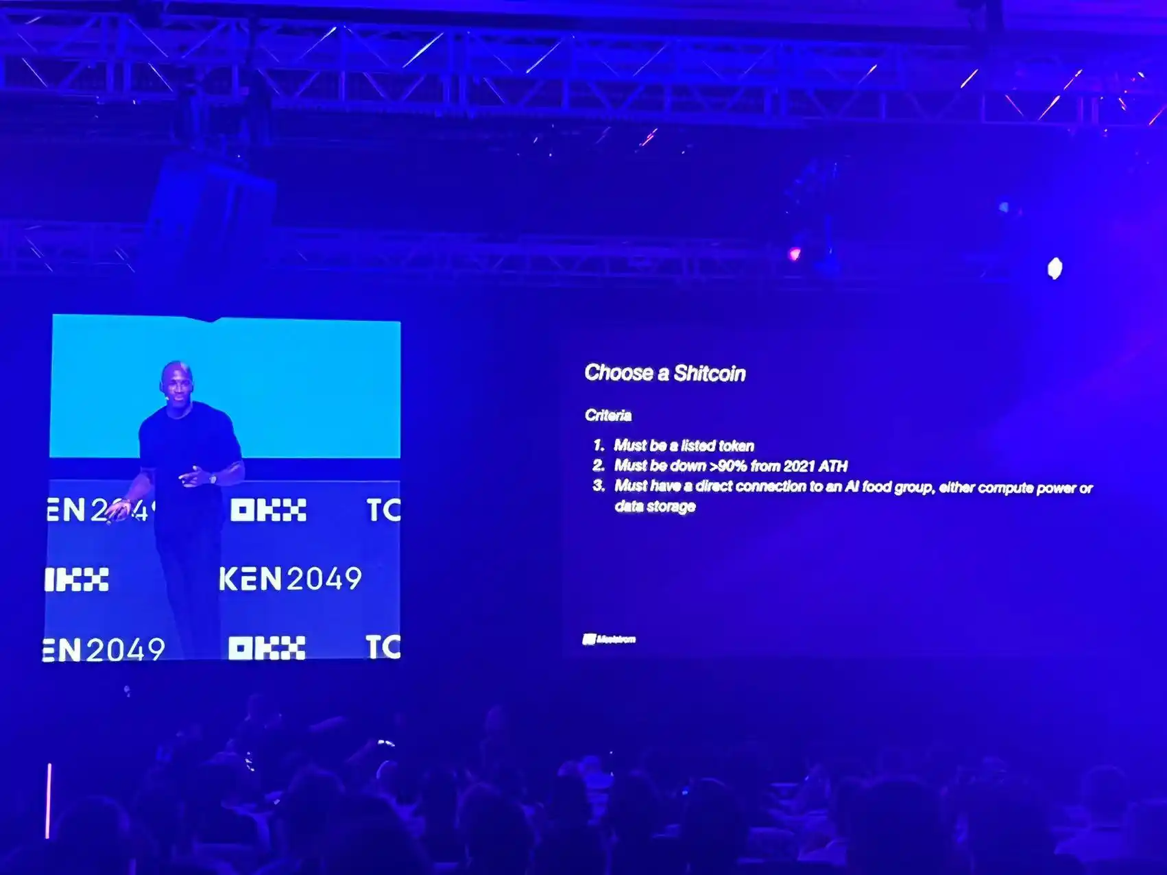 所以,现在我需要一个 shitcoin,我希望有一个上市的代币可以购买,这个代币已经完全崩溃,从 2021 年的历史最高点下跌超过 90%,最积极的卖家已经全部抛售掉,这样当这个代币开始上涨时,它还有很大的增长空间,进入的资金不需要太多就可以使这个代币上涨 10 或 20 年,而且它还需要与 AI 产业链相关。
