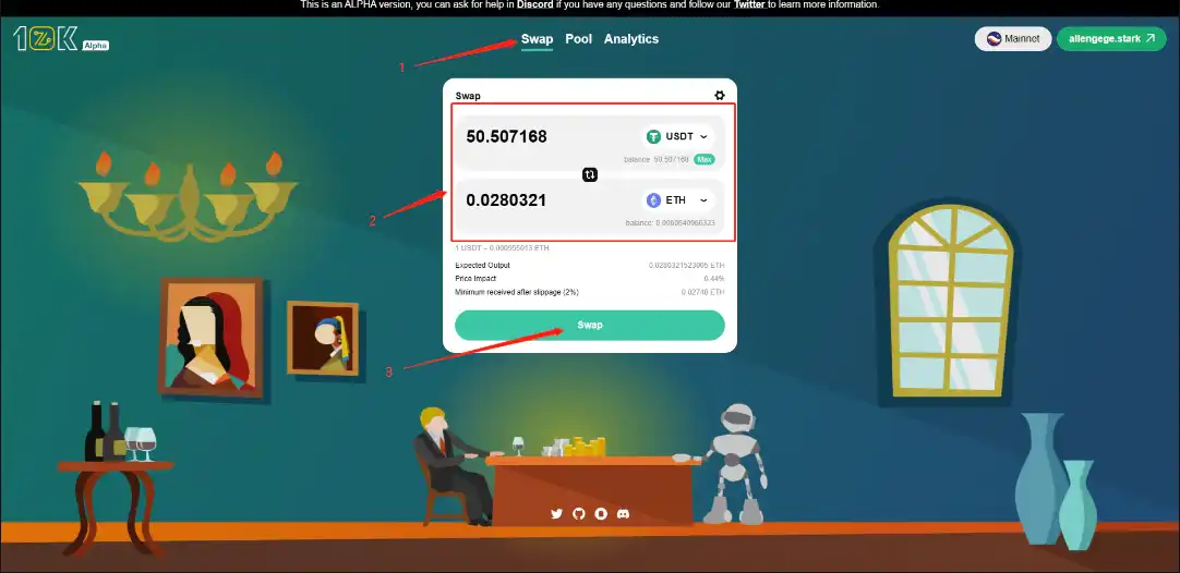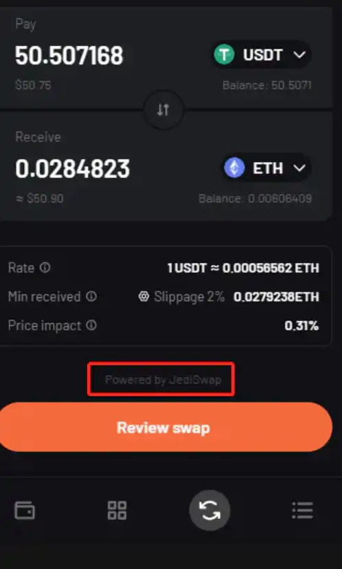 ArgentX 钱包集成了 Jediswap, 可以直接在钱包里 swap 一次