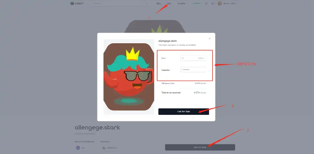 任意选择一个 mint 的 NFT 上架出售