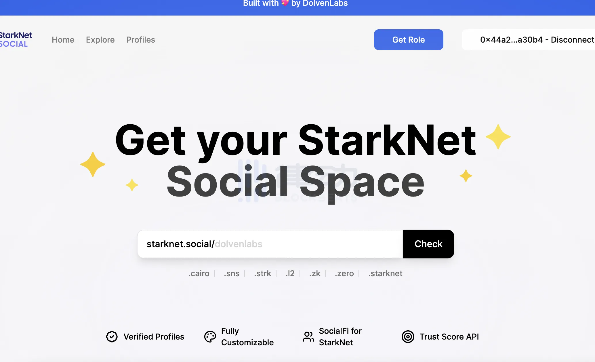 Starknet 生态去中心化社交网络协议 Starknet Social 近期发布了其 testnet。首先,介绍一下该协议,Starknet Social 是 Starknet 生态上的去中心化社交网络协议,允许用户通过 Dolven Labs 构建的可定制社交空间: