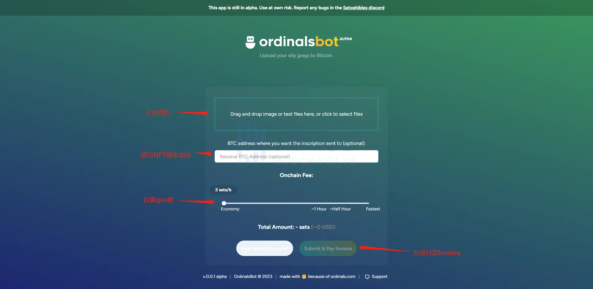 登陆 bot 网站,按照下图指示填写好相关信息。建议手续费直接拉满以提高铸造成功率,费用会增加一些,拥堵时大概会在 30 刀以上。