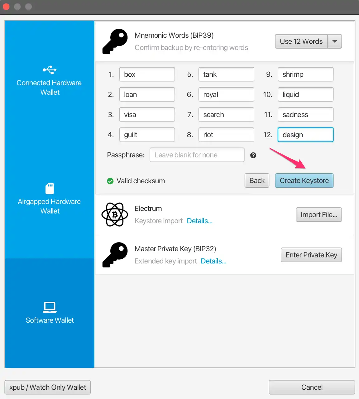 点击 import keystore。