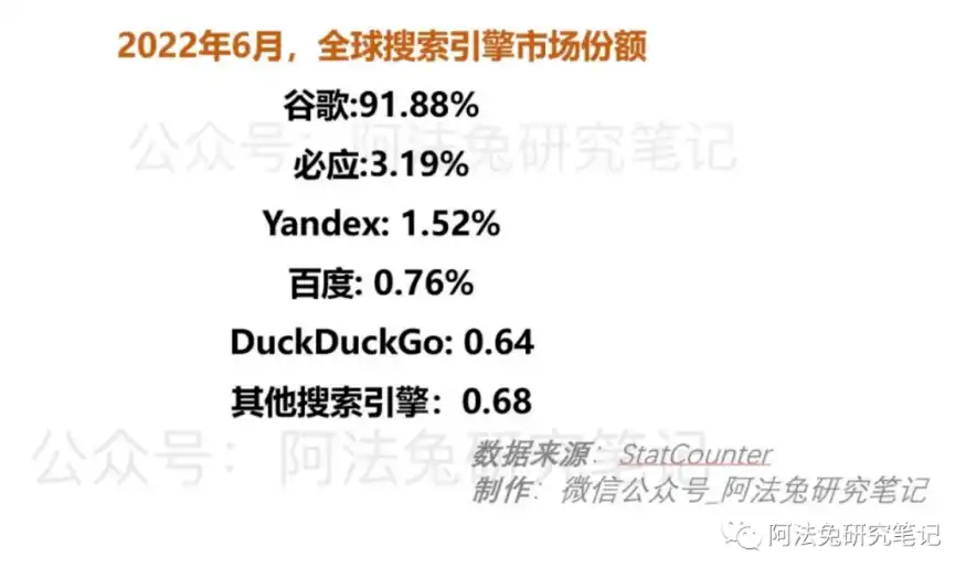 多年来,谷歌正面战胜了许多对手,将他们全部征服。无论是 Bing、雅虎还是 Yandex,再或者百度、DuckDuckGo。尽管这些企业的营收也不错,比如 Bing 收入为 116 亿美元,但是 2021 年,雅虎以 50 亿美元被收购,百度和 Yandex 是地区的龙头大哥,但是从全球宏观层面来看,这些公司都很难在搜索业务和谷歌正面对抗。