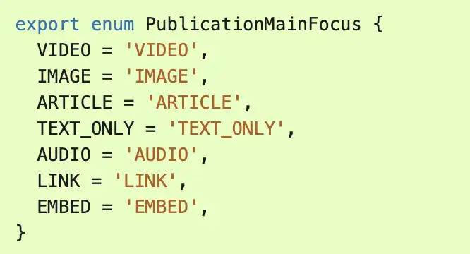 具体内容则是存储在链下的,contentURI 会指向一个存储地址,但是 lens 对于数据的存储格式也是有一套标准规范的,这样就可以达到上文中提到的各产品基于 lens 构建后可以互通的效果,如图 1 为解析出来的一个数据格式,包括名称、内容、类型等。图 2 为枚举的数据格式,图文音视频等都包括,从而结构化内容数据。