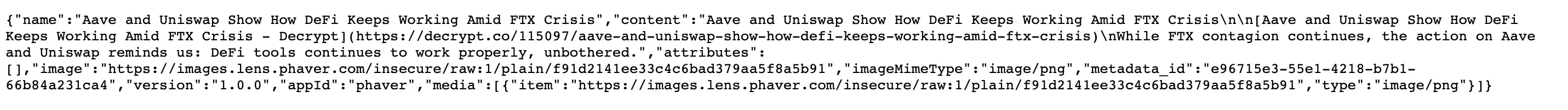所以我认为 lens 也是基于这两点认为如果他们再做一个社交产品,也不过就是市面上的 10 个产品变成了 11 个,继续增加孤岛,所以他们把自己向下藏了一层,首先制定了标准,将什么样的行为需要铸造为 NFT,发布的内容需要用什么样的数据格式等问题都标准化,能够保证基于其标准所开发出的产品是不存在孤岛问题。