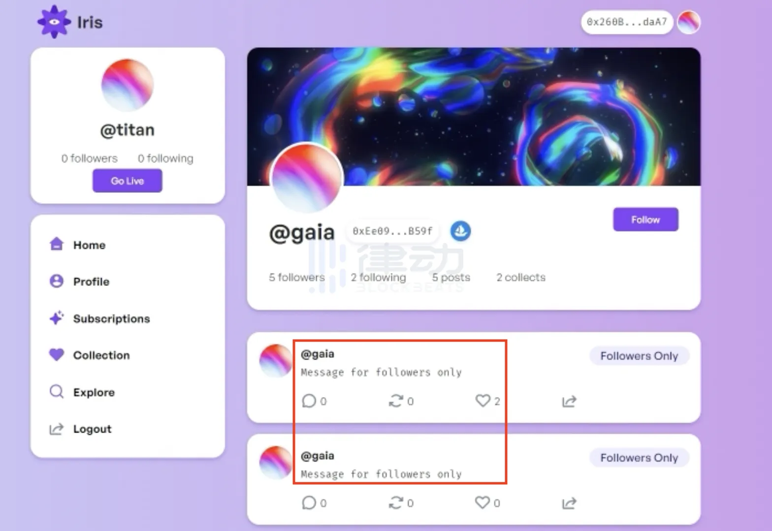 有意思的是,Iris 允许用户设置一个订阅费 (以 Matic 定价),其他用户必须支付费用才可以开始关注。