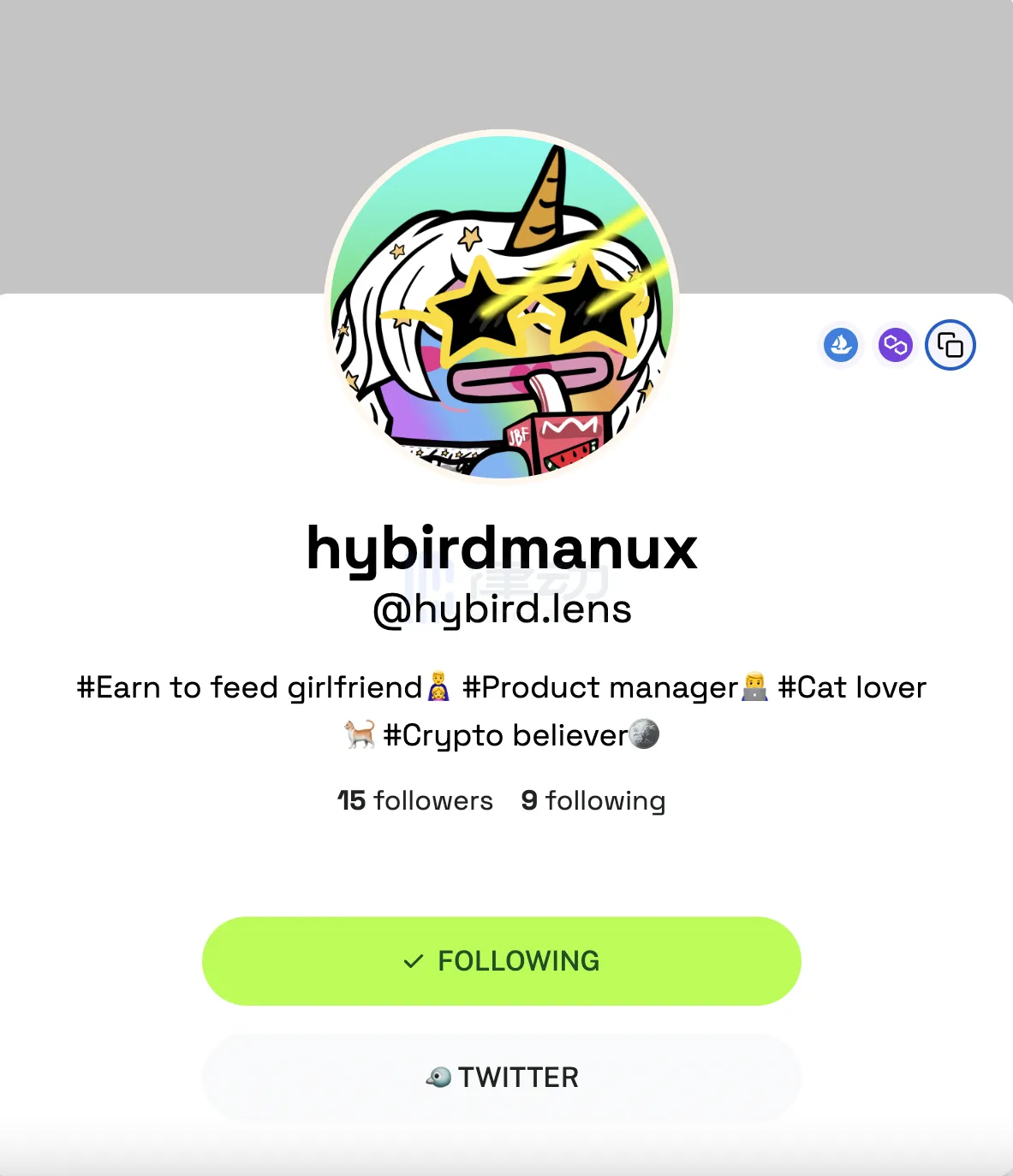 点进一个 Profile NFT 后,我们可以看到该用户的 Twitter、OpenSea、Matic 地址等链接,与大多数社交图谱类似。