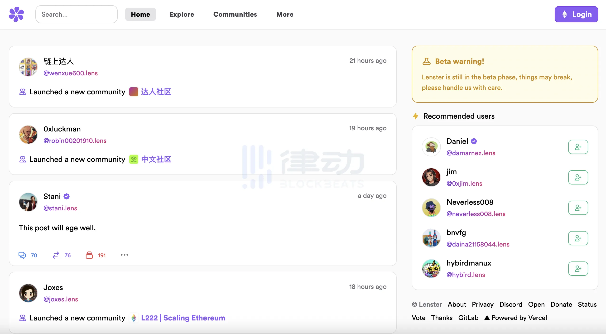 Lenster 是基于 Lens Protocol 构建的去中心化社交媒体平台,用户可以在这里发表内容和评论,组件和加入社区等。进入Lenster主页后,链接自己的 Lens Handle 即可开始使用。