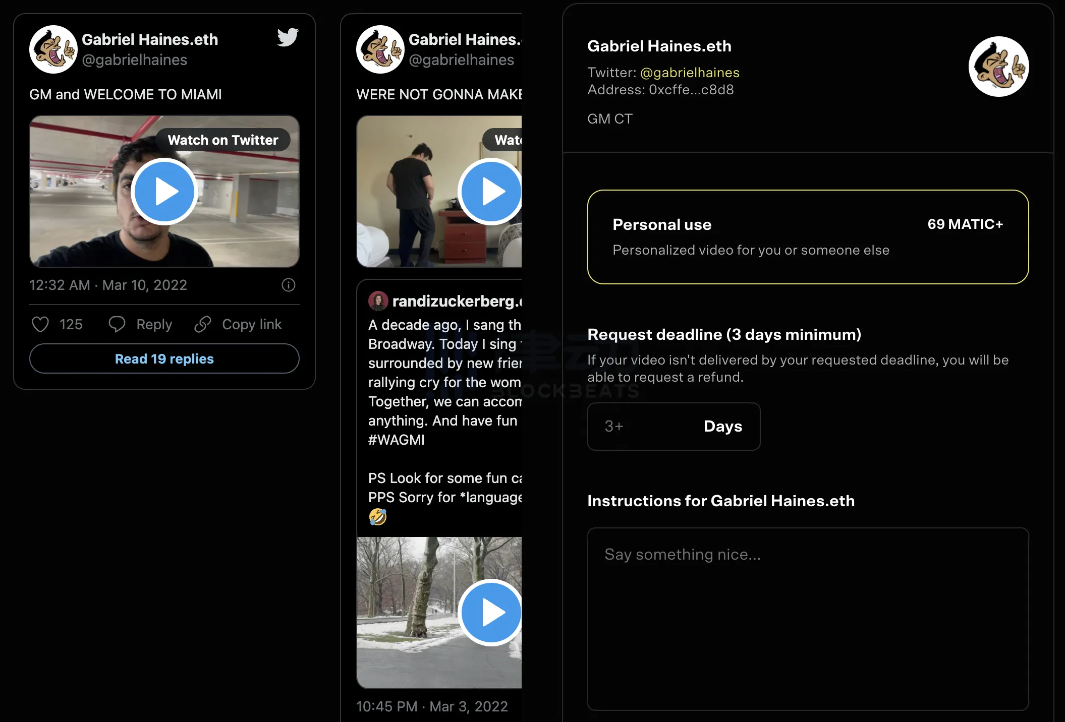 Clipto 是一个去中心化视频定制平台,用户可以向内容创作者支付费用,请创作者为自己定制专属的 NFT 视频。进入Clipto主页后,链接钱包便可开始「提交视频订单」。
