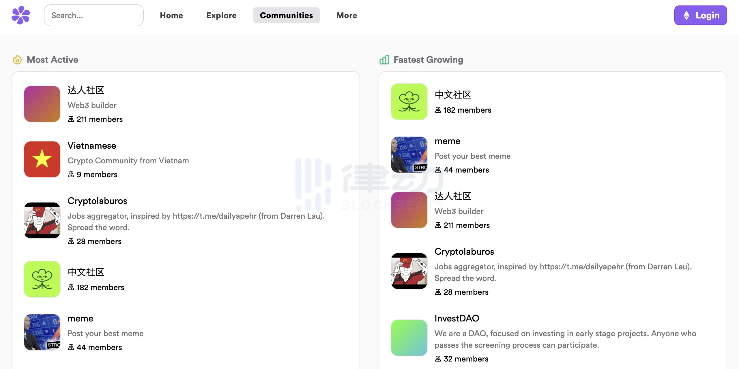 在 Explor 和 Communities 页面,则分别能看到当前火热的言论内容和社区。