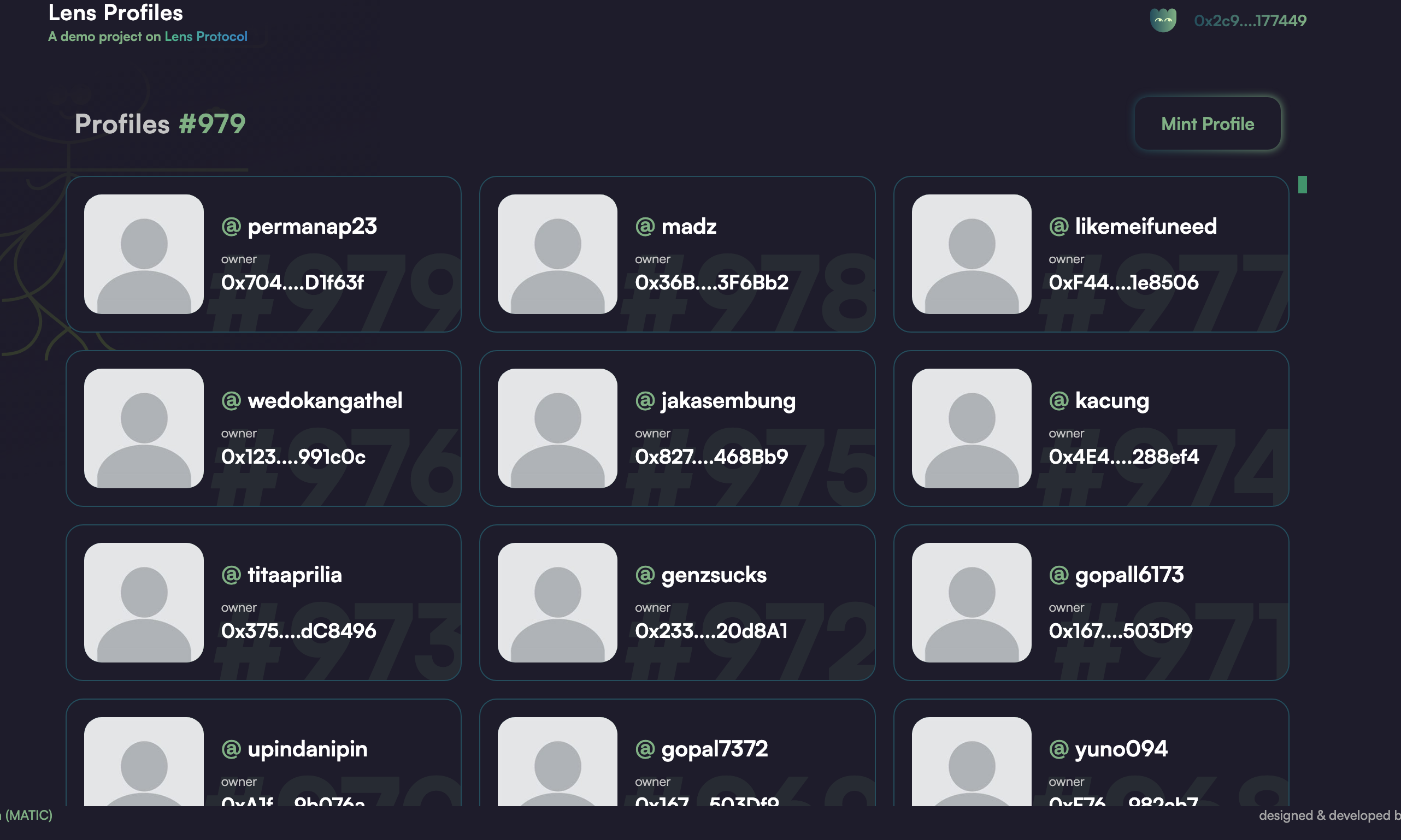 如果有幸加载出来了,那你看到的页面会是这样的,每一个 mint profile 成功了的都会显示在这个列表。
