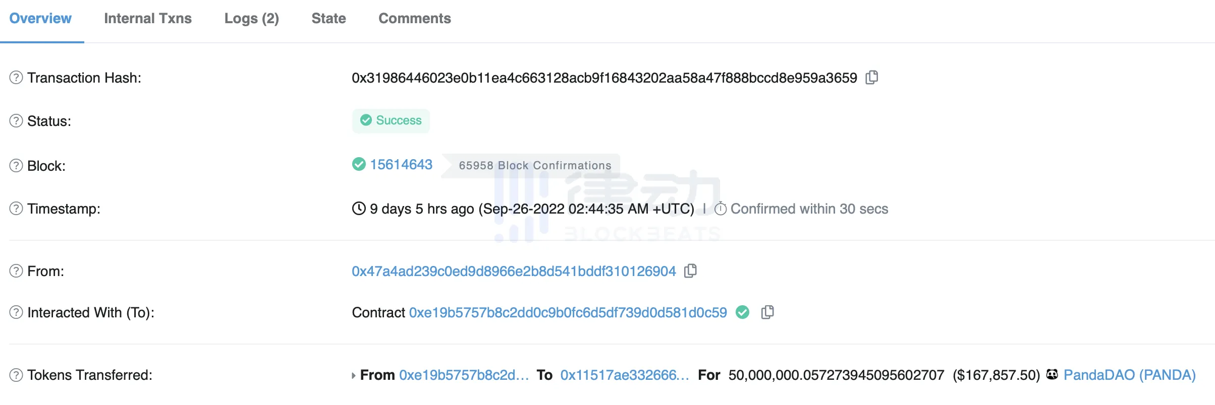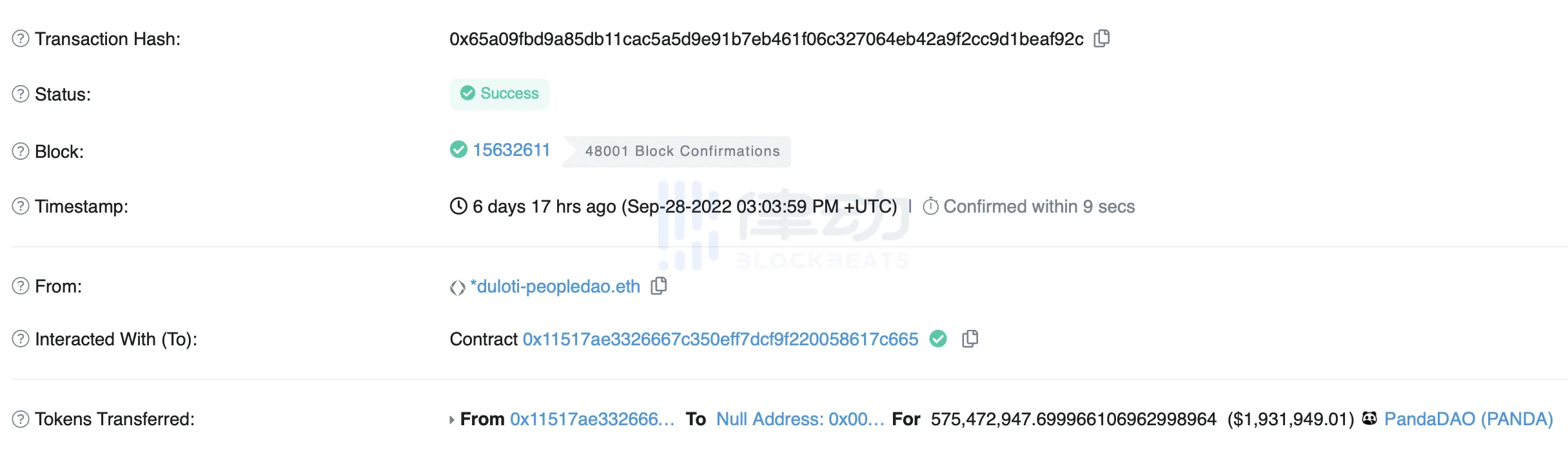 国库 PANDA 销毁合约记录
