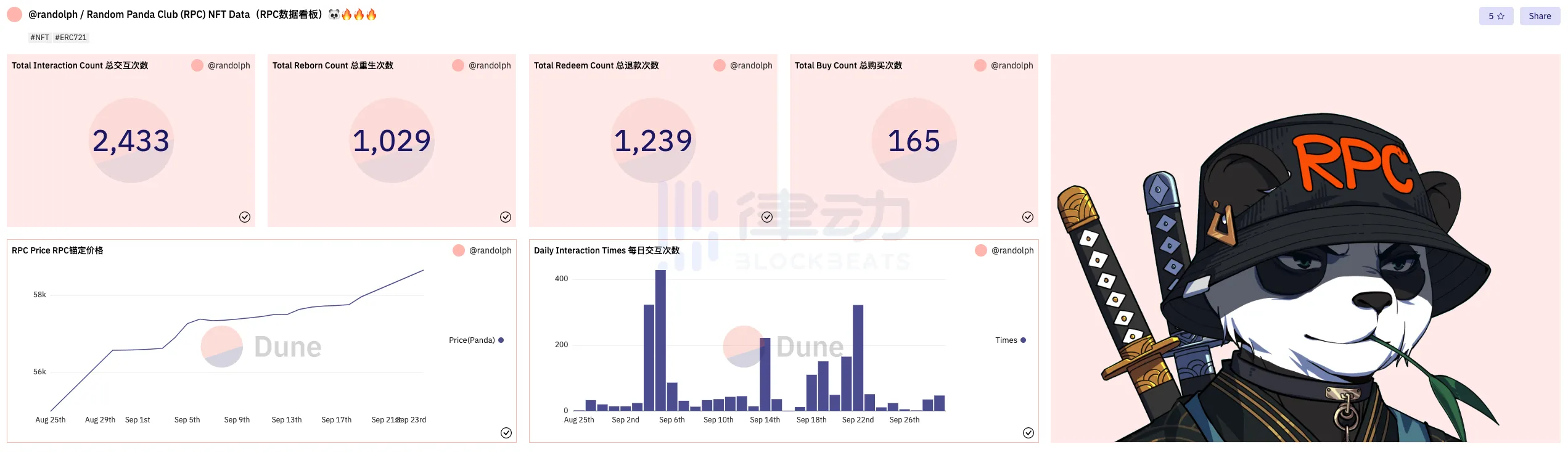 经过几个月的开发,RPC 与回购合约在 8 月中旬一同推出。协议交互数据非常不错,锚定价格从 50,000PANDA 上涨至 58,000 PANDA,增长了约 20%。