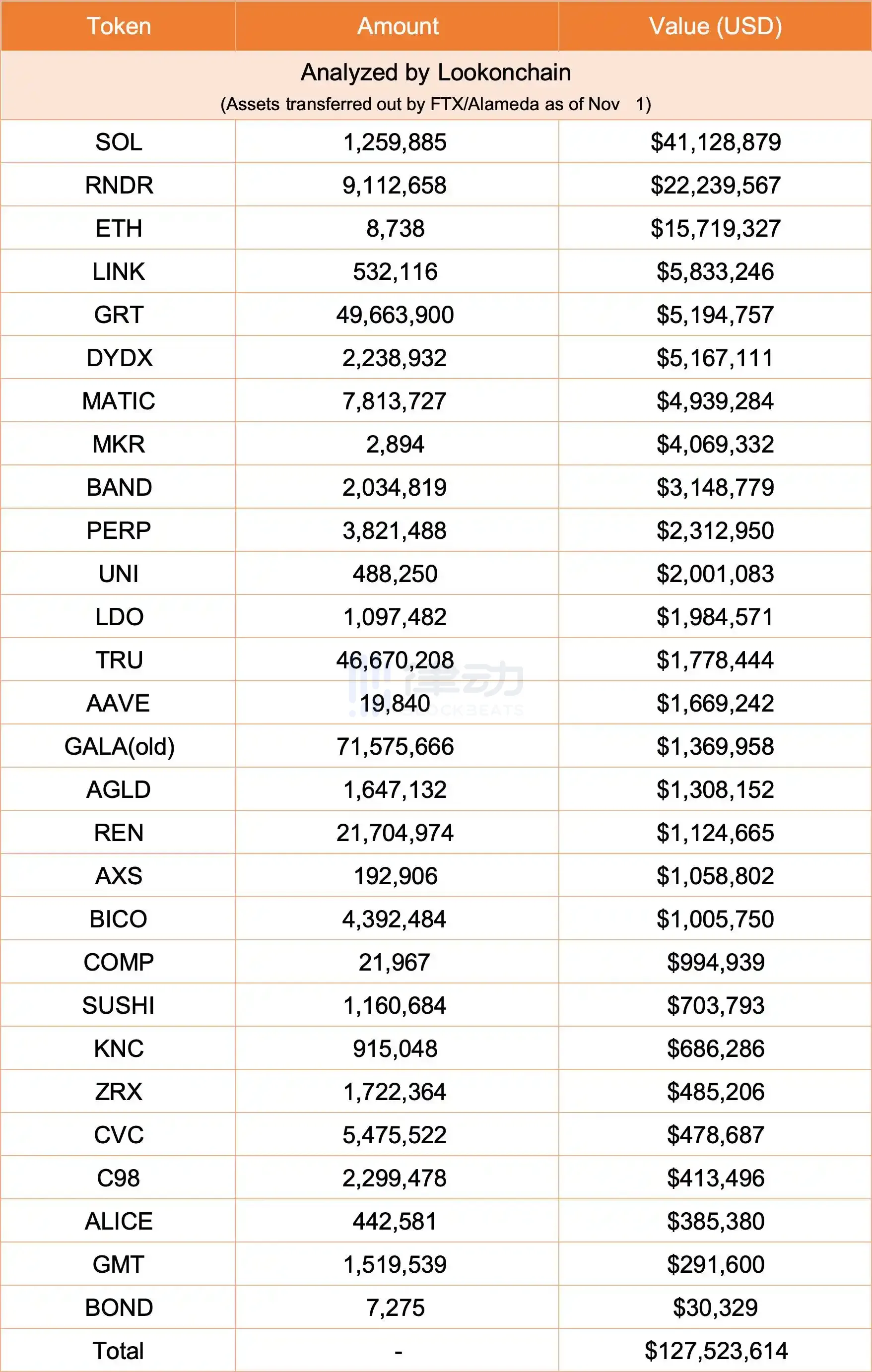 继 25、26、27 日,FTX 及 Alameda 相关地址转出 5900 万美元资产之后,刚刚过去的几天中,FTX/Alameda 似乎又加快了操作步伐,至今已转出总计价值约 1.275 亿美元的加密资产。