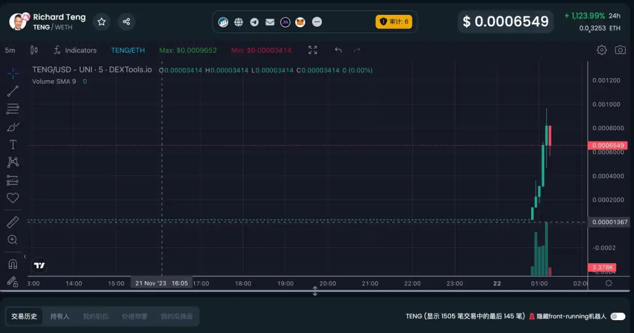 市场往往领先一步,早在 11 月 22 日凌晨 1 点,美国司法部还未正式公布消息之前,在 Uniswap 上就出现了名为 Richard Teng 的 MEME 代币。