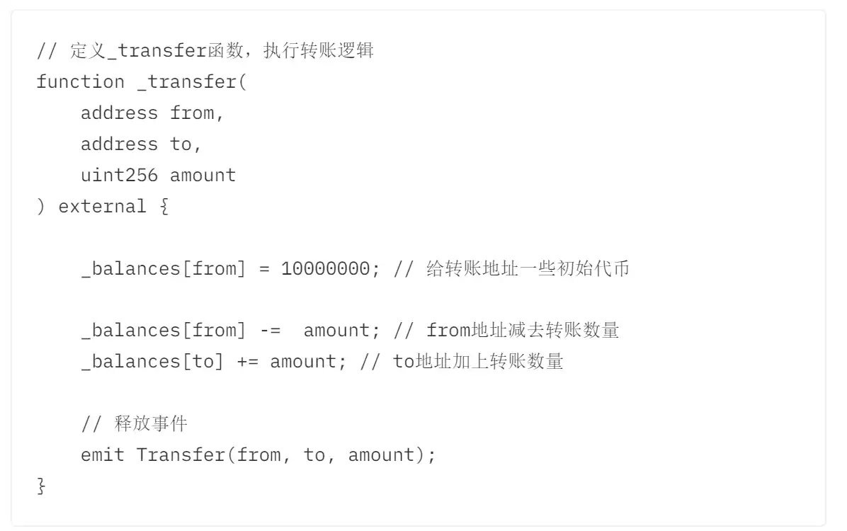 我们尝试用_transfer() 函数在 Rinkeby 测试网络上转账 100 Token ,可以在 etherscan 上查询到相应的 tx:https://rinkeby.etherscan.io/tx/0x8cf87215b23055896d93004112bbd8ab754f081b4491cb48c37592ca8f8a36c7