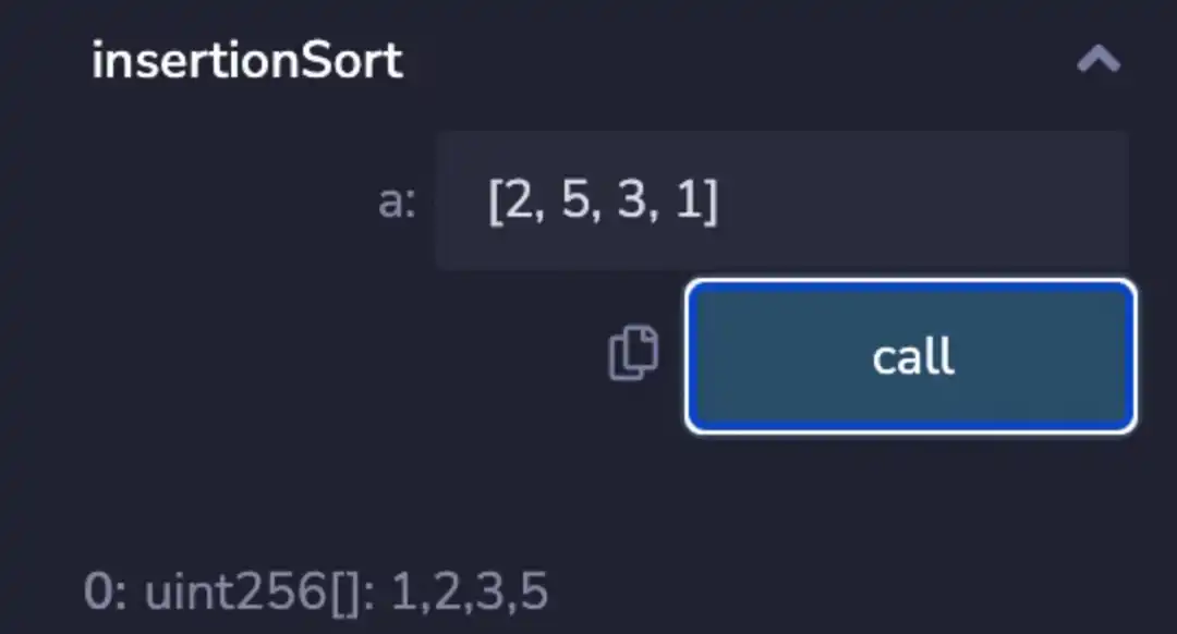 那我们把改好的放到 remix 上去跑,输入 [2, 5, 3, 1]。BOOM!有 bug!改了半天,没找到 bug 在哪。我又去 google 搜」solidity insertion sort」,然后发现网上用 solidity 写的插入算法教程都是错的,比如:Sorting in Solidity without Comparison