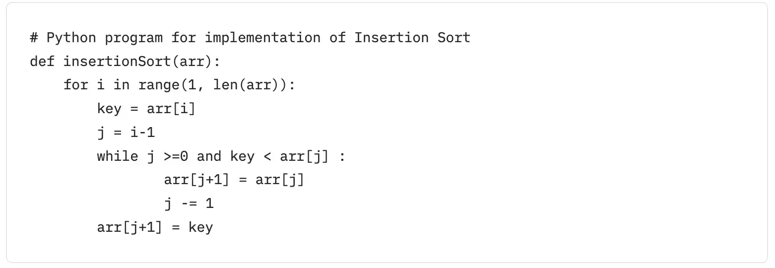 我们可以先看一下插入排序的 python 代码: